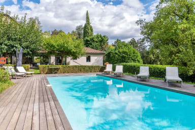 Le Pressoir vous offre une leçon de perfection. Belle sous le soleil, simple dans sa façon de vivre, riche de surprises, la maison répond à toutes les envies. Entièrement ouverte sur l'extérieur, entre pierres, ciel et verdure. La maison est magique et se fond dans la nature environnante. À l’extérieur, les terrasses se font accueillantes avec toujours le détail déco disposé à l'endroit idéal.