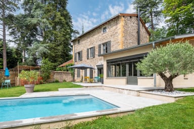 Bambou a été entièrement métamorphosé. Verrière, cheminée et pierres apparentes soulignent le caractère de la bâtisse. La décoration soignée fait la part belle aux matières naturelles qui se répondent dans une atmosphère colorée et chaleureuse. A l'extérieur tout est là pour profiter de la piscine, à l'ombre des cèdres centenaires ou au soleil de la terrasse. A vous de voir !