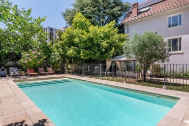Il existe des lieux rares où comme par magie on se sent immédiatement bien. La Cloche est de ces endroits d'exception. Une ambiance cosy et intimiste, une décoration aux couleurs douces et pastels : Ici les magnifiques carreaux de ciment se marient avec le bois et la lumière omniprésente. Été comme hiver prélassez-vous devant la cheminée ou sur la terrasse face à la piscine.