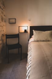 La maisonnette vous permettra de profiter des charmes de la vieille ville, au bord du canal, à 200 mètres du lac et à deux pas de tous les lieux d’intérêt, tout en restant au calme. L’espace devant la porte d’entrée où trois marches mènent directement au canal vous permettra de vous reposer ou de prendre un repas. Le logement est pensé pour accueillir confortablement deux couples ou un couple avec un ou deux enfants. La maisonnette comporte deux chambres doubles, chacune avec une salle d’eau dédiée. Le couloir d’entrée au rez-de chaussée distribue le WC, une première chambre et sa salle d’eau indépendante. La cuisine entièrement équipée siège centralement au premier étage, surmontée d’une mezzanine accueillant un coin salon avec téléviseur. Quelques marches supplémentaires permettent d’accéder à la chambre du haut, ancien pigeonnier, et sa pièce d’eau intégrée. Attention, l’escalier en colimaçon qui distribue les différentes pièces et la proximité avec l’eau du canal ne sont pas compatibles avec l’accueil de jeunes enfants qui commencent à marcher et explorer les lieux tout seul.