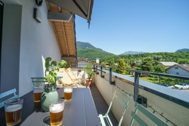 Parfait pour 4 personnes, cet appartement se compose de deux chambres avec lit double, d'une salle de bains, de WC séparés, d'un grand salon avec cuisine ouverte et d'une terrasse exposée Sud-Ouest avec vue sur les montagnes.