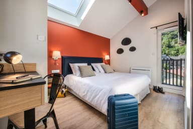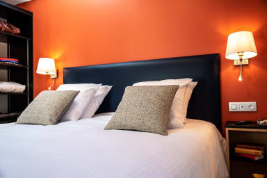 Chambre double, comprenant au choix un lit double 160 x 200 cm ou deux lits simples 80 x 200 cm, une salle de douche privative