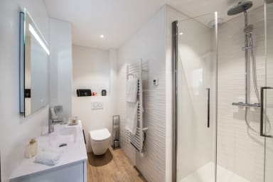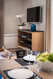 Chaque détail de l'appartement Carline évoque l’élégance, la somptuosité et le prestige. Épuré et raffiné, il est le lieu idéal pour se retrouver et apprécier le temps qui se fige en famille ou entre amis. Cet appartement peut accueillir jusqu’à quatre voyageurs en quête de repos et de tranquillité.