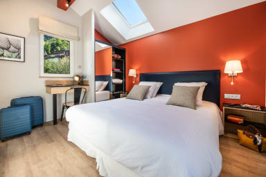 Chambre « suite » : comprenant au choix un lit double 180 x 200 cm ou deux lits simples 90 x 200 cm, une salle de douche privative avec toilettes, coffre fort