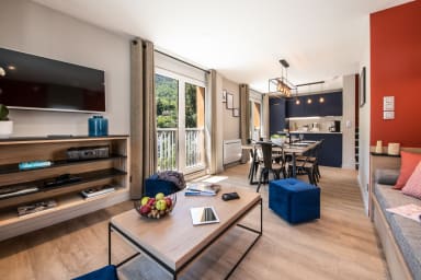 Afin d'accueillir 1 personne supplémentaire (5 personnes max/appartement) - un couchage dans le salon avec le canapé lit convertible 90 x 190 cm est possible sous réserve de la confirmation de la Résidence