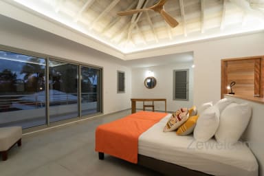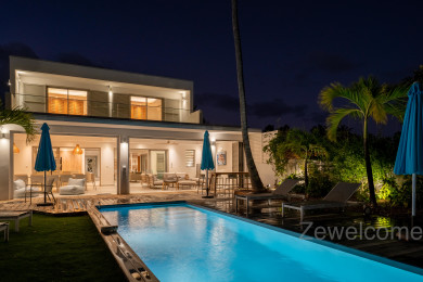 Villa d'exception au design soigné et épuré. Un bijou faisant face aux eaux turquoises du lagon. Luminosité incroyable pour cette sublime villa d'architecte de conception contemporaine.