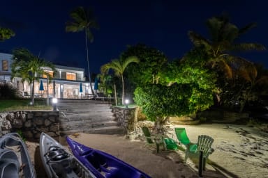 Mobilier de qualité. Espaces largement ouverts sur la mer caraïbe et la plage en bordure de jardin.