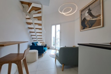 Découvrez notre appartement de 45m² en duplex ! Pouvant accueillir confortablement 4 personnes, profitez de sa terrasse pour des petits-déjeuner ensoleillé et de sa localisation stratégique !