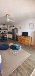 Le séjour s'ouvre sur 1 large baie vitrée où vous pourrez partager de bons repas en famille et ou entres amis sur la loggia. Venez découvrir les Spécialités Locales : Le poisson sous toutes ses formes, comme la Brandade, la fameuse Bourride de lotte, La Gardiane de Taureau, La Rouille Graulène différente de la rouille sétoise...Prenez le temps de découvrir les vignobles aux alentours avec le vin des sable et les Pic St Loup !