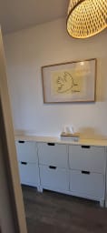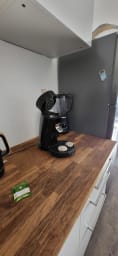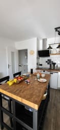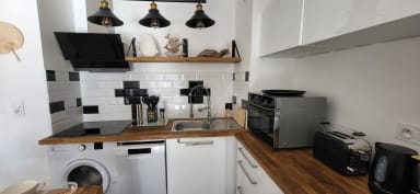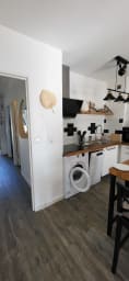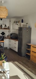 Côté cuisine : ouverte sur le séjour, entièrement équipée (3 feux induction, Four combiné micro-ondes, frigo, Congélateur, lave vaisselle, lave-linge, cafetière Senséo, grille pain et bouilloire) avec un mange debout pour 4 personnes qui vous permettra d'accueillir vos repas et convives.
