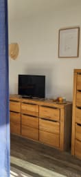 Côté couchage : 1chambre avec Lit en 140 cm, Oreillers carrés 65x65, Couette. kit draps et serviettes vous seront amenés sur réservation à 20 euros pour 2 personnes pour 1lit.