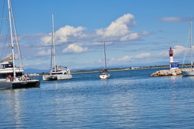 Port-Camargue situé en plein coeur des quartiers Marinas 1 et 2 : lieu emblématique des yatchs, voiliers, etc et l'école de Voile de l'UCPA.