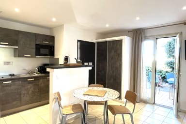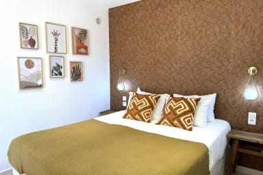 De plain-pied, notre gîte Casa Ardente (N°8) est composé d'un confortable couchage 160 x 200 cm (2 lits jumeaux), d'une cuisine équipée, d'une salle de douche, de rangements, d'une terrasse exposée plein Ouest avec bains de soleil et d'une table de jardin. Un stationnement privatif vous est également réservé.