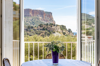 Appartement T3 de 69 m2 avec très jolie vue sur la mer, le Cap Canaille, le village et le château de Cassis. Terrasse de 5 m2, parking.