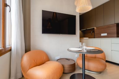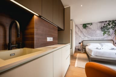Ce studio peut accueillir 2 personnes. Il a été entièrement refait à neuf et décoré par un architecte d'intérieur.