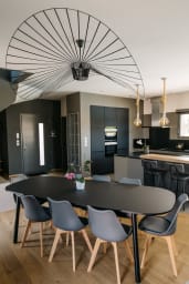 Un agréable espace de vie avec une cuisine fonctionnelle parfaitement équipée