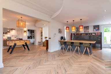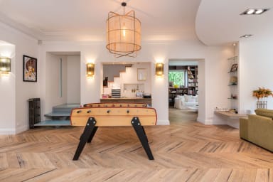 C'est une maison où il fait bon vivre, où tout est pensé pour profiter de la vie simplement en s'amusant. Venez profiter de l'apéro au bord de la piscine pendant que les enfants jouent dans le jardin. C'est une maison joyeuse ouverte sur l'extérieur, déco tout en étant chaleureuse avec ses pièces vintage et classiques.