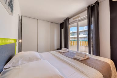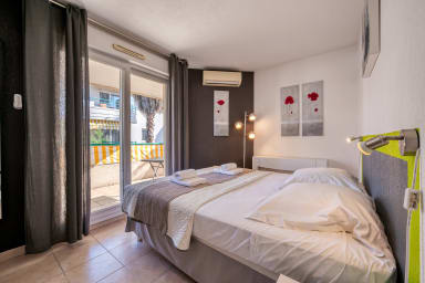 Appartement climatisé tout confort 3 pièces, dont 2 chambres et 2 terrasses dans une résidence avec piscine et place de parking en sous-sol avec toutes les commodités. Près des commerces (5 minutes à pieds) et à moins de 10 mn des plages à pieds. Une piscine est présente dans la résidence.