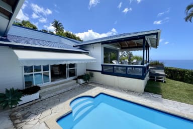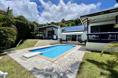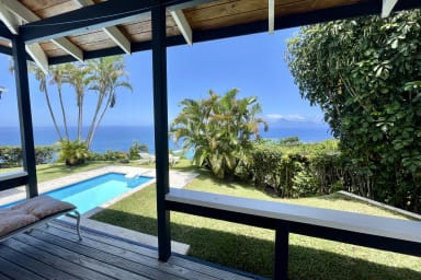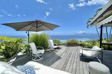 Superbe villa de charme avec sa piscine perchée sur les hauteurs de Tahiti avec l'une des plus incroyables vue sur le lagon et Moorea, offrant fraicheur et calme
