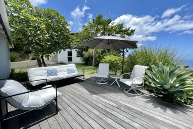 Cette grande villa familiale est donc entourée d'un jardin fleuri notamment de Tiare, qui ont donné leur nom à la villa. Elle a été construite dans l'idée de profiter des extérieurs le plus possible, le soleil, omniprésent rend les lieux inondés de lumière.