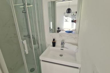 - Une chambre avec un 140x190 Labélisée confort et coin salle de douche