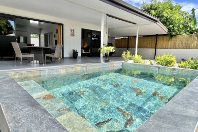 Jolie petite maison neuve et cosy avec sa piscine privative, proche des magasins à pied et non loin de la mer