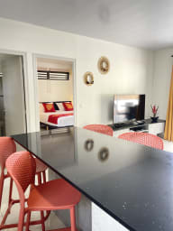 Cette location de vacances est située à quelques minutes à pieds du supermarché Super Manava et de nombreux autres commerces, restaurants et snacks. Cependant un véhicule vous sera indispensable pour bouger en toute liberté.