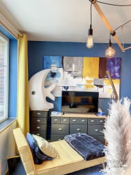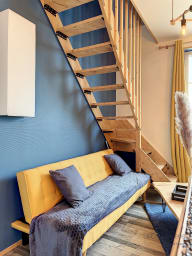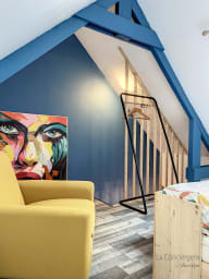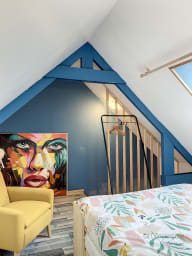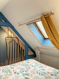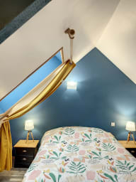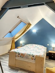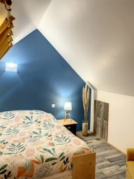 À l’étage, la chambre cosy avec lit double vous promet des nuits douces dans une atmosphère paisible.