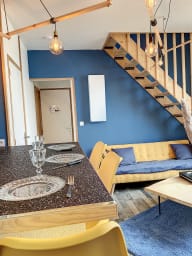 💙 Le Cocon Idéal pour un Séjour à Deux au Bord de la Mer Vous cherchez un écrin pour une escapade romantique ? Vous venez de le trouver ! Cet appartement au style soigné et coloré vous accueille dans une rue paisible, à deux pas de la mer, pour un séjour en toute intimité.