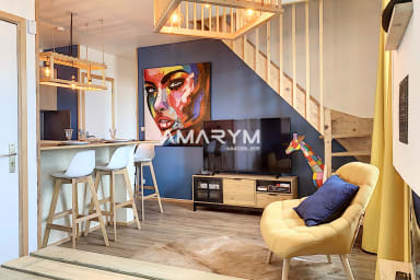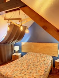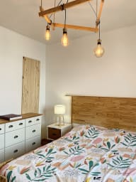 L’appartement dispose de deux belles chambres avec lits doubles standard, l’une au rez-de-chaussée, l’autre à l’étage – parfait pour que chacun profite de son espace privé.