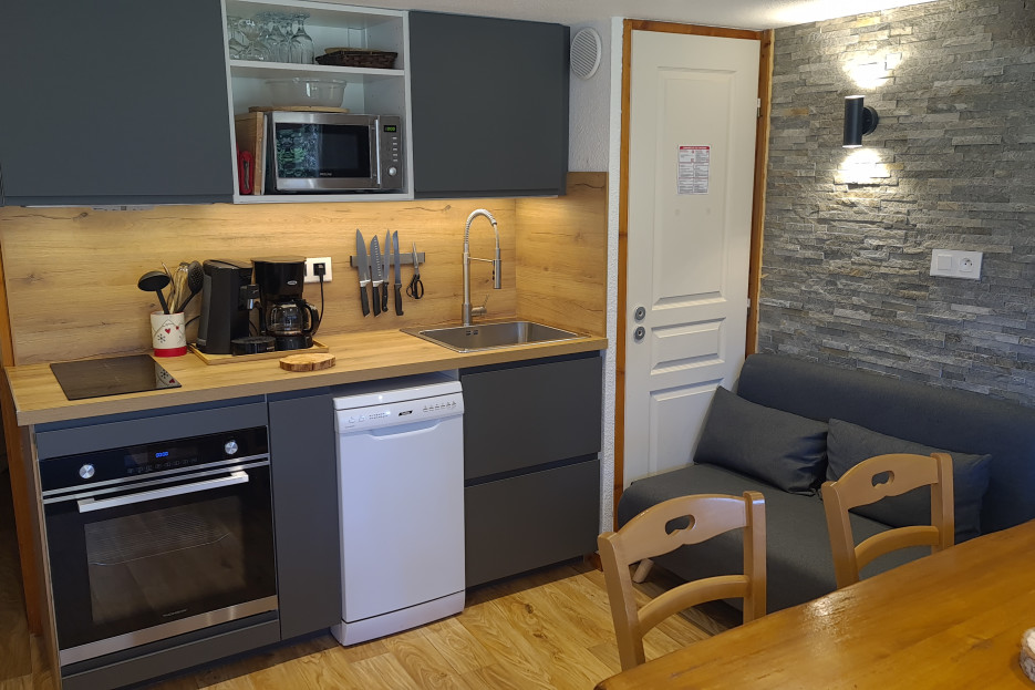 - d'une cuisine ouverte parfaitement équipée (four et lave vaisselle),