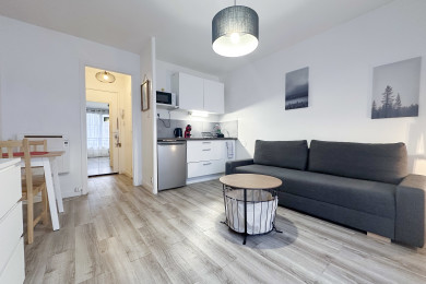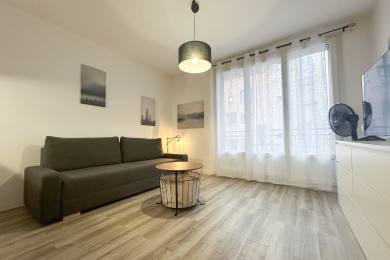 đ Lâappartement dispose dâun espace de couchage : un canapĂ© lit convertible dans la piĂšce Ă vivre.