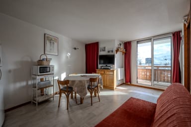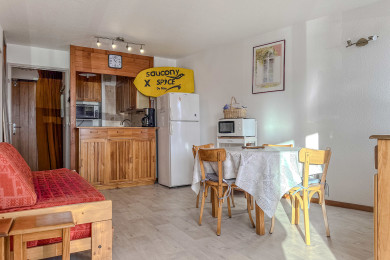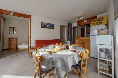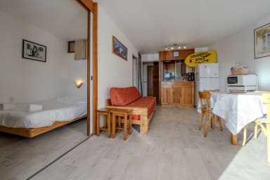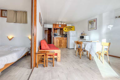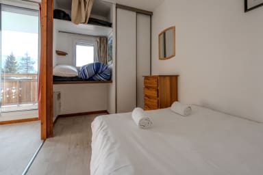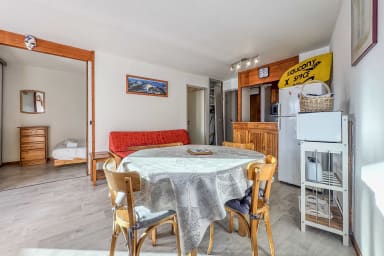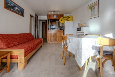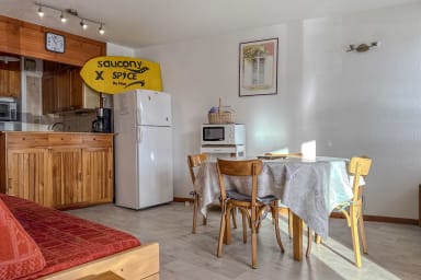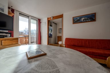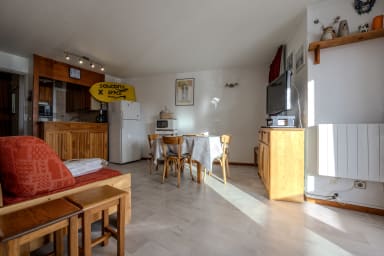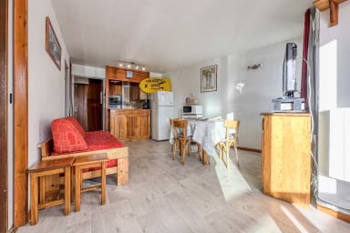 🏢 Idéalement situé plein sud, cet appartement lumineux de 36m² et tout confort a été entièrement rafraichi en mai 2019. Il peut accueillir 2 à 6 personnes. Il est en rez-de-chaussée de montagne donc surélevé.