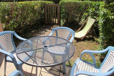Studio 2 personnes, maximum 4 couchages, jardinet, très proche de la mer et des commerces