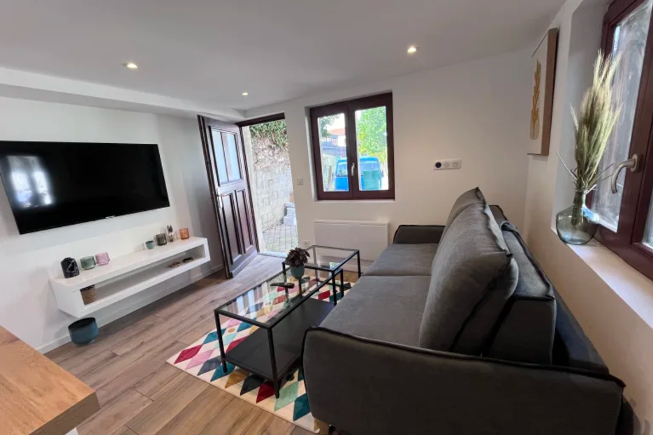 • Un salon avec un canapé convertible + TV WIFI