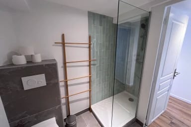 • Une salle d’eau avec distributeur de gel douche.