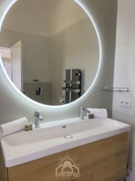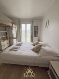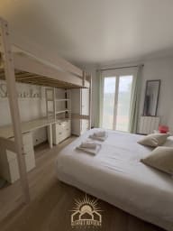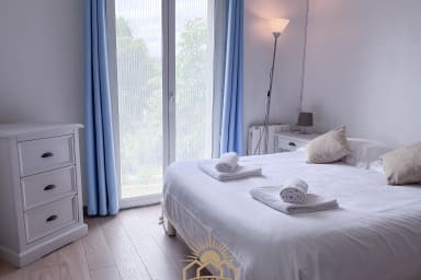 Cette villa peut accueillir confortablement jusqu'à 8 personnes, avec ses 3 chambres et ses 2 salles de bain .