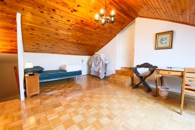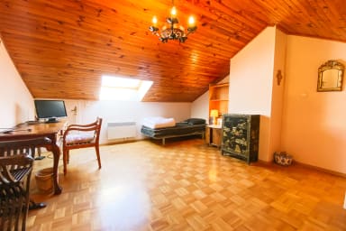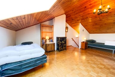 - D'une grande chambre sous les toits avec 2 lits simples.