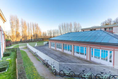 ATTENTION : piscine fermée du 4/1/26 au 5/2/26 Très bel appartement pour 4 personnes situé au milieu d'un parc paysager, à proximité de l'hippodrome, du parc équestre et de l'orangerie de la Baie. Piscine couverte et parking gratuit