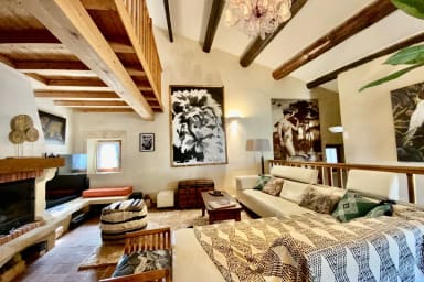 Spacieuse et atypique, vous pourrez profiter des espaces de vie chaleureux aux grands volumes, réunis autour du patio à l’abris des regards.