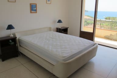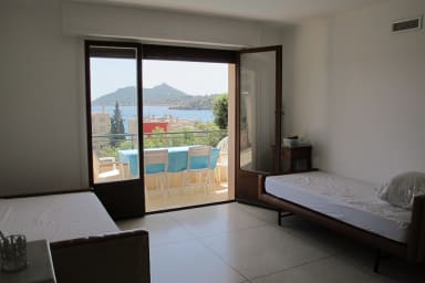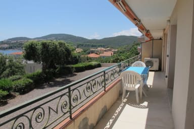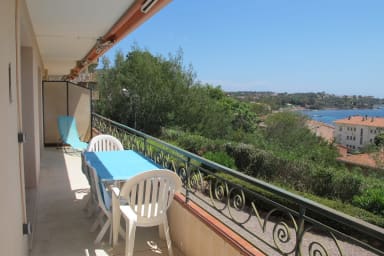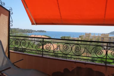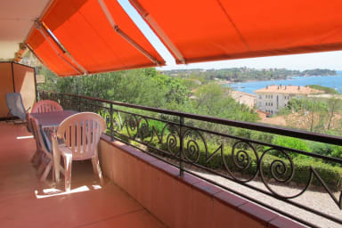 Il y a un balcon pour profiter de l'extérieur avec des stores pour le soleil, vue mer.