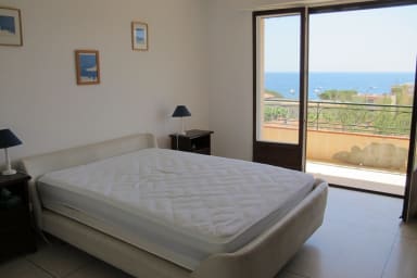 Très bel appartement 2 chambres, balcon vue mer. Tout équipé, clim, lave vaisselle, lave linge, ..;. Au calme, proche de la mer, 100m, de toutes les commodités