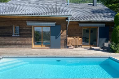 Vous allez adorer cette superbe villa avec piscine (chauffée du 15/05 au 15/09 ) et vue sur le Lac d’Aiguebelette. Décorée avec goût et équipée de tout le confort nécessaire, elle est dotée de 4 chambres et peut accueillir jusqu’à 8 personnes. Située à 5 minutes en voiture des premières plages du magnifique Lac d’Aiguebelette où vous pourrez profiter d’une multitude d’activités nautiques !