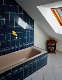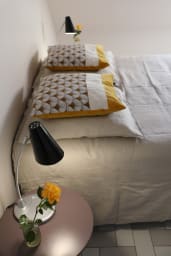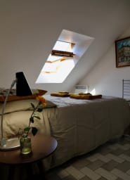 La chambre dispose d’un lit double (140x200) offrant un espace nuit agréable et reposant. Une salle de bain ainsi que des toilettes séparées complètent l’intérieur.