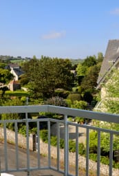 Le balcon est aménagé pour les repas en plein air et permet de profiter pleinement de la vue exceptionnelle sur le Havre de Carteret et la plage de Barneville.