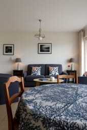 L'appartement dispose d'une chambre avec un lit double (160x190) et d'une 2ème chambre avec deux lits simples (90x190).