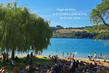 À 300 m (4 min à pied via la voie verte) : plage de Bilieu, réservée aux habitants et au camping (badge fourni).
