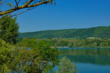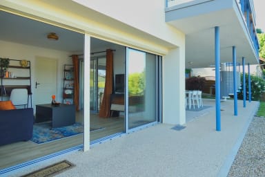 Au bord des eaux cristallines du lac de Paladru, profitez d’un séjour paisible dans ce gîte en rez-de-chaussée d’une maison d’architecte des années 60, avec vue sur le lac, terrasse couverte et accès plage à 300 m. Un emplacement privilégié pour des vacances entre nature et confort.