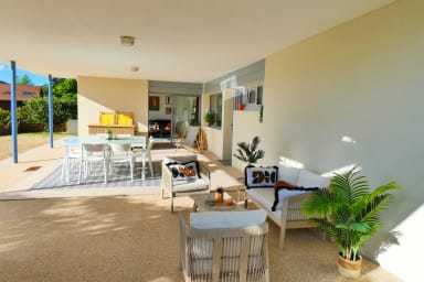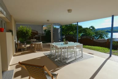 Profitez d’une terrasse couverte de 60 m² avec plancha, salon de jardin, grande table familiale et vue sur le lac, idéale même par temps de pluie.