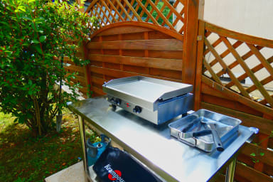 LAC CASA 60' constitue un logement entier occupant le rez-de-chaussée de la maison : vous disposez d'une entrée indépendante, d'une terrasse et espace plancha entièrement privatifs. Seul le jardin clos sur le côté de la maison avec la balançoire est partagé avec les propriétaires.